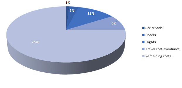 The direct costs for business trips, including entertainment costs and expenses, can be reduced by an average of 25%.